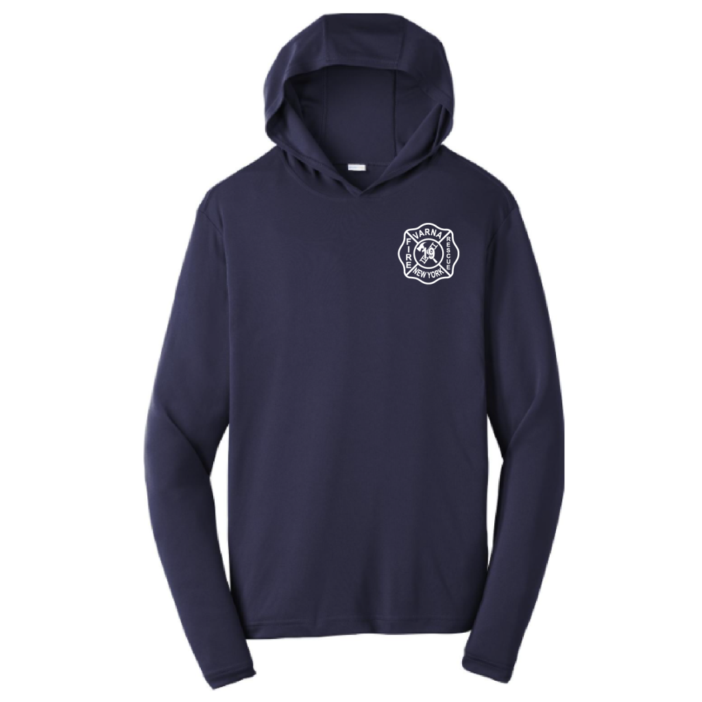 This lightweight hooded pullover locks in color and wicks moisture. It’s versatile enough for year-round wear.