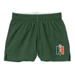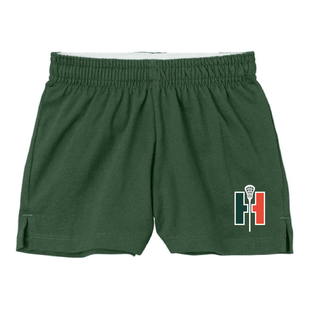 Designed for cheer, dance and other activities, this jersey knit short has a classic exposed waistband that can be worn rolled or unrolled.